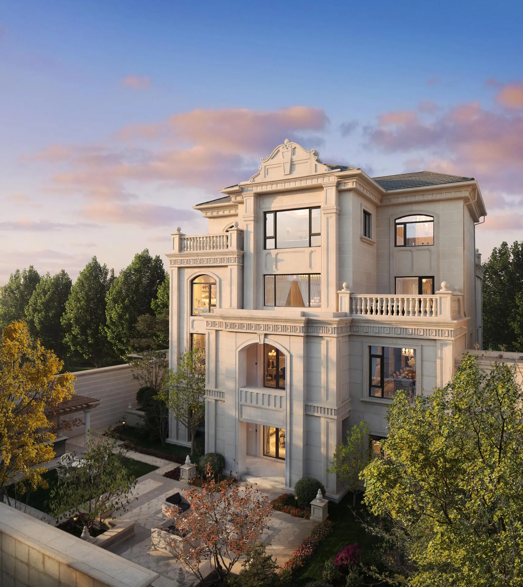 提供面積介乎420至960平方米的聯排、獨棟別墅,不帶裝修,為每戶贈送德國品牌進口電梯及智能科技保安系統。